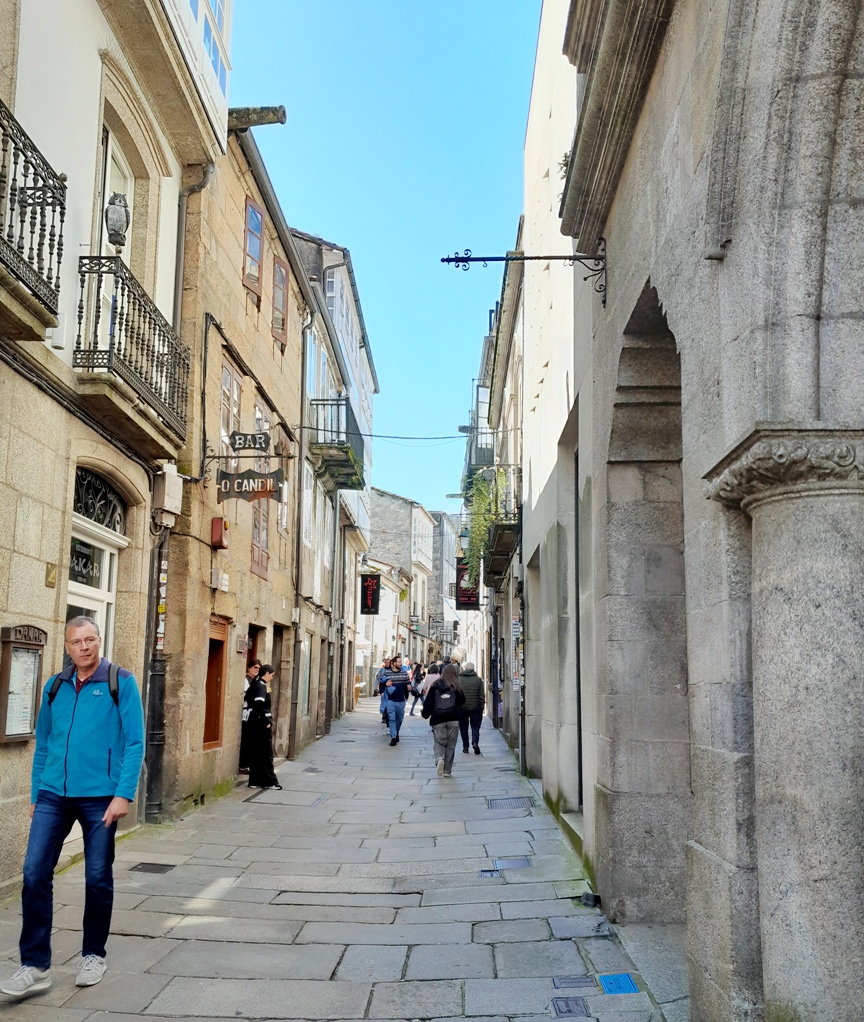 Ich gönn' mir einen Espresso im Straßencafé und Renate stromert weiter durch die Altstadt. Hier in Santiago dominiert einfach das Kirchliche! RK (3) © 2025