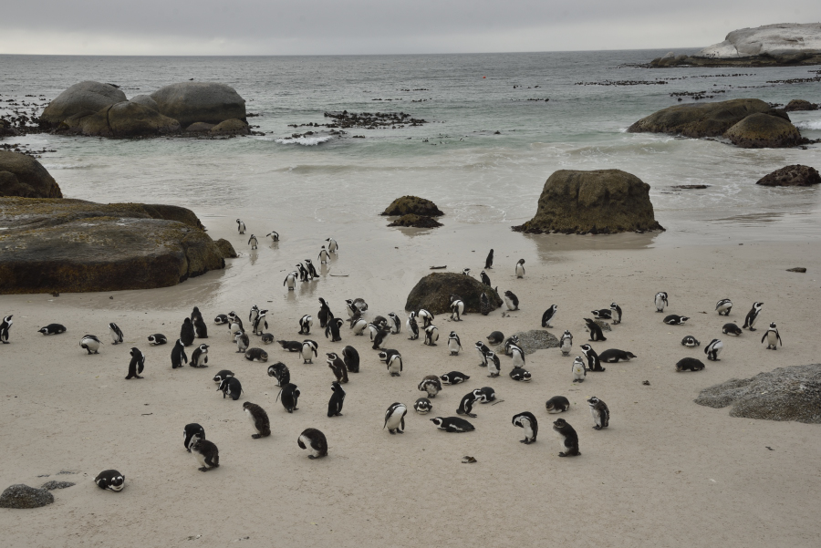 Die afrikanische Population hat 1910 noch 1,5 Mio. Pinguine betragen, aktuell sind es nur noch ca. 20.000. Überall gehen die Zahlen weiter zurück, Klimawandel, weniger Fische sind die Hauptursachen. Drei Festlandskolonien existieren neben 24 Inselkolonien. Einzig die Boulder Kolonie wächst, dank der Zuwächse auch aus dem SANCCOP Rettungsprogramm für Eier und Jungvögel.