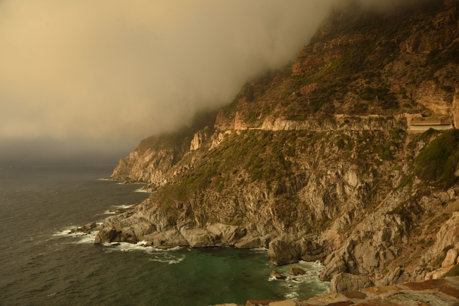 19.3.: Wir machen die Tour zum Kap und auf den gewundenen Chapman Peak Drive (Maut pflichtig) entlang der Steilküste direkt in den Sonnenuntergang: