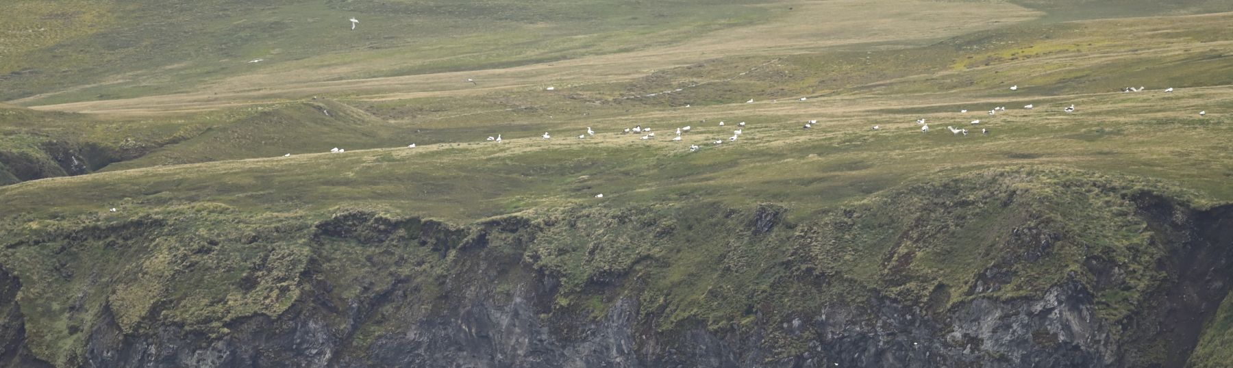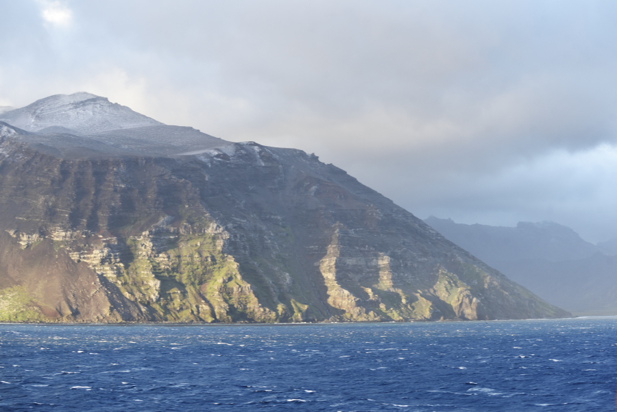11.3. : Crozet Inseln - Ile de l'Est ist unsere erste Station: Wir segeln um 6:30 im Norden vorbei, da sind wir etwas vom Sturm geschützt. Trotzdem auf Deck 6+9 kann man sich kaum halten. Der Wind haut einen die Vögel aus dem Sucher des 500mm Objektivs. Sehr schwierig. Die Landschaft ist großartig.