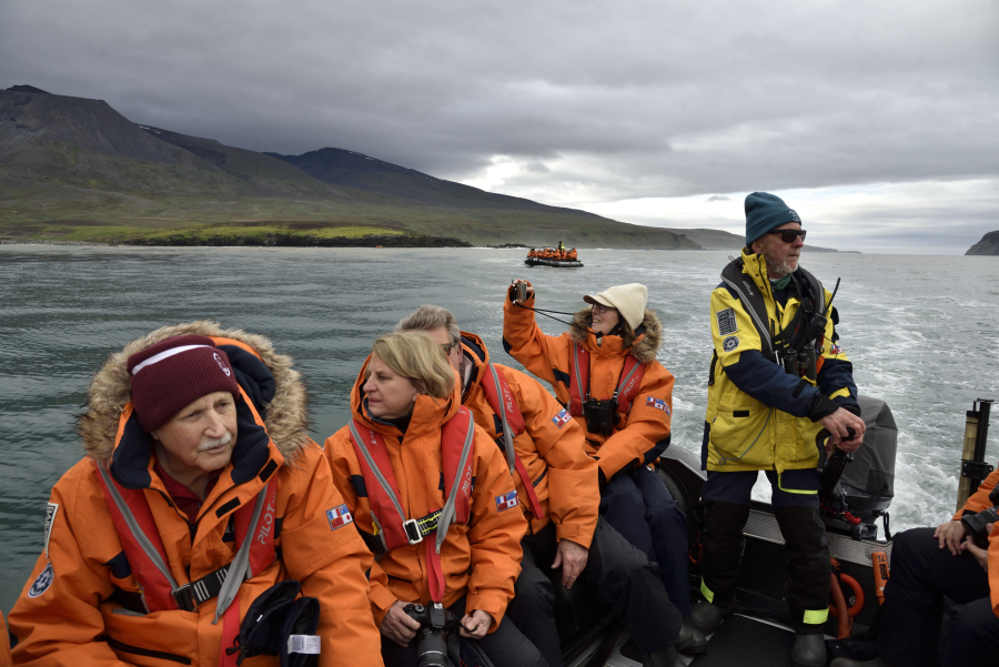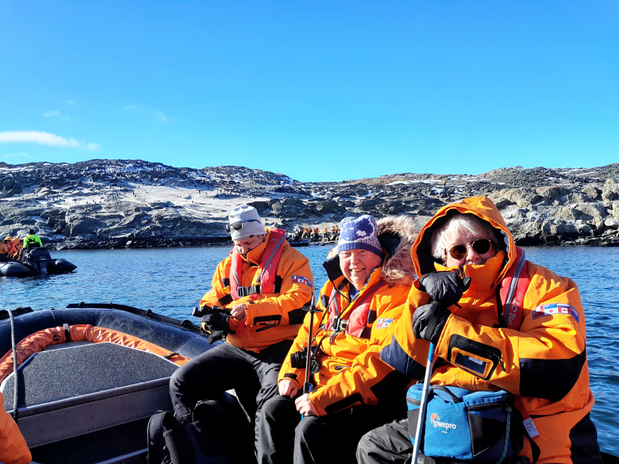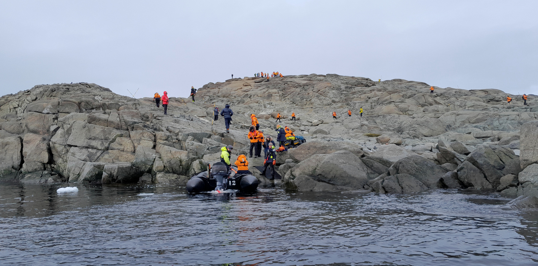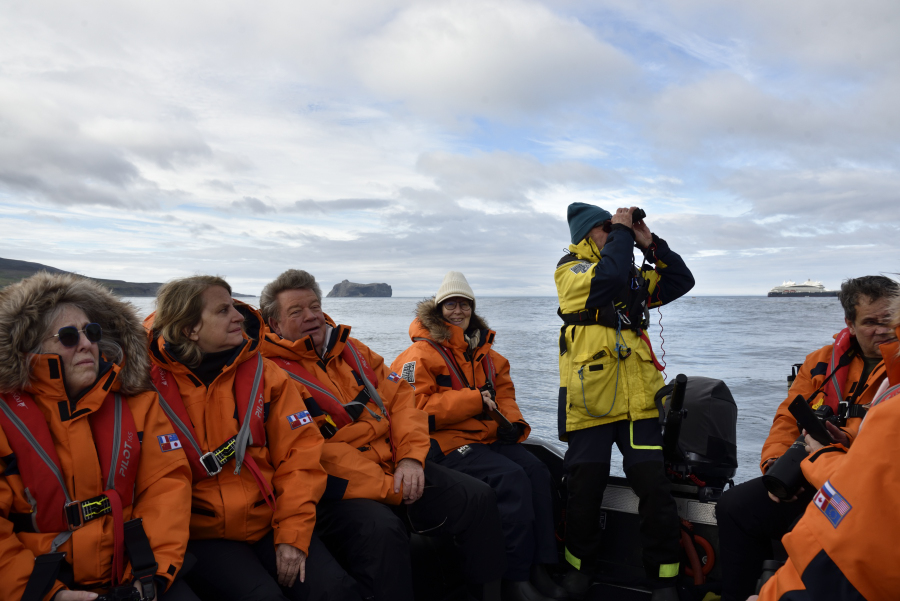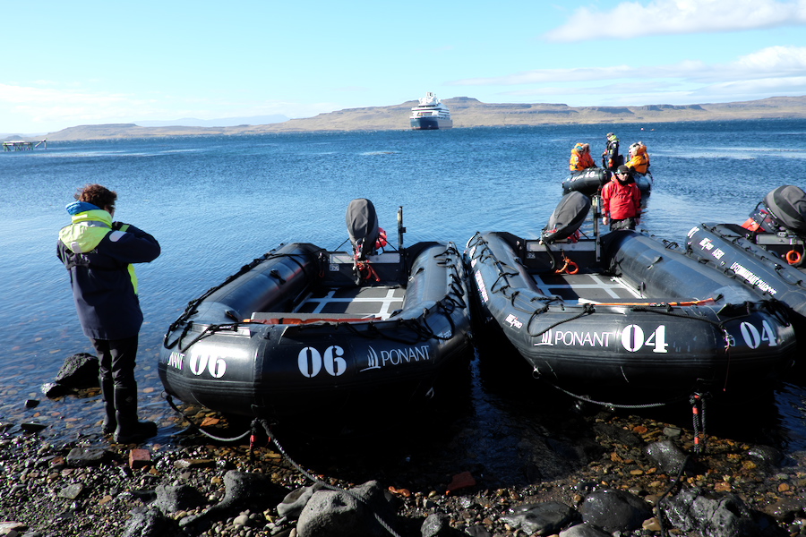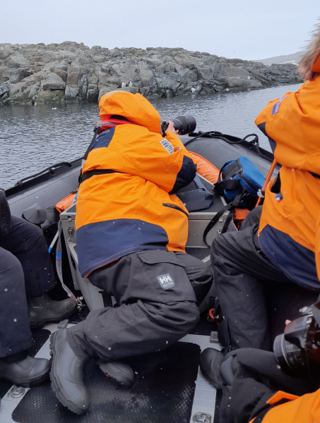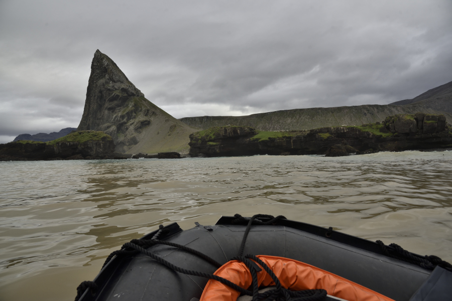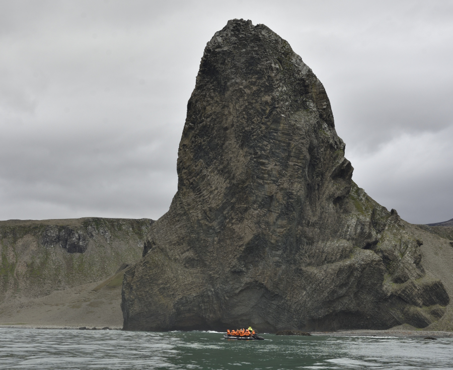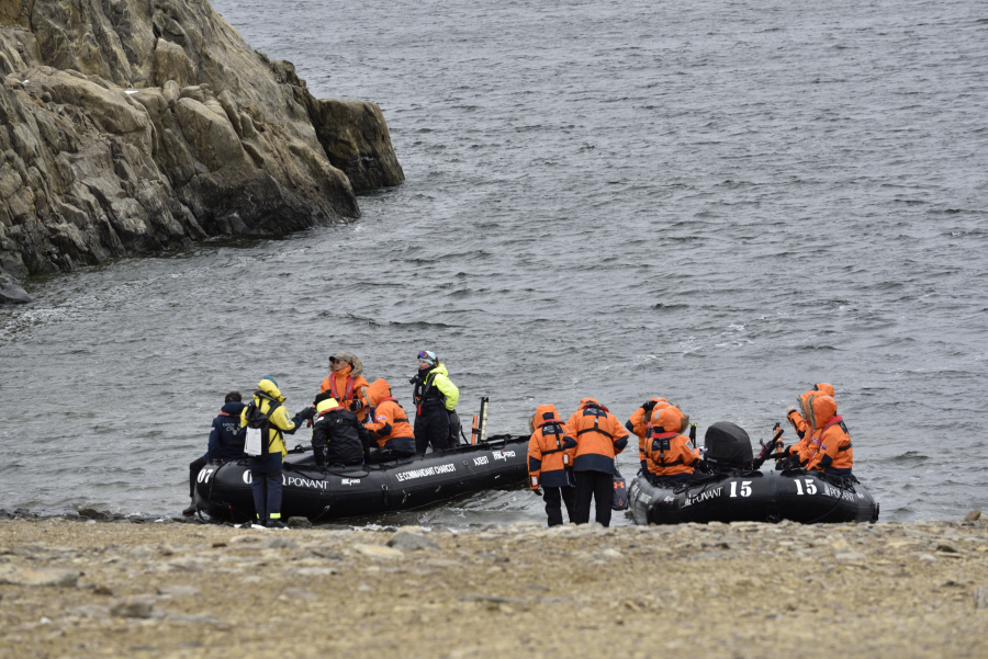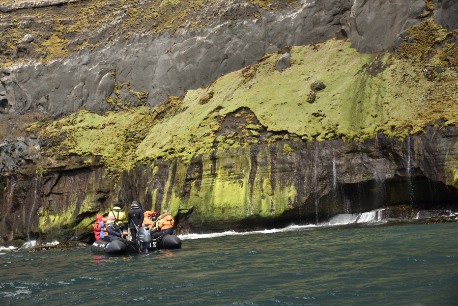 Wir haben heute Zeit: nur 8 Mann im Zodiac haben eine ruhige Überfahrt, die Anlandestelle ist Wind geschützt.
