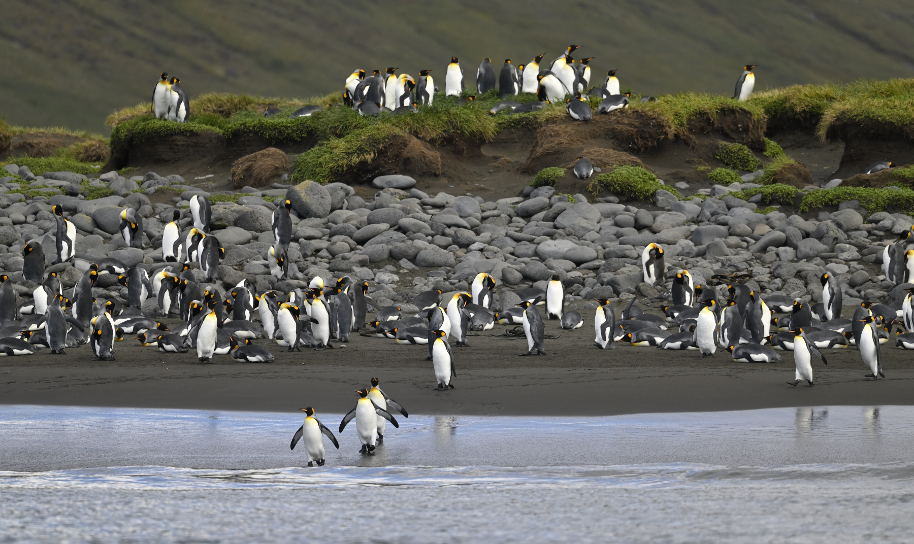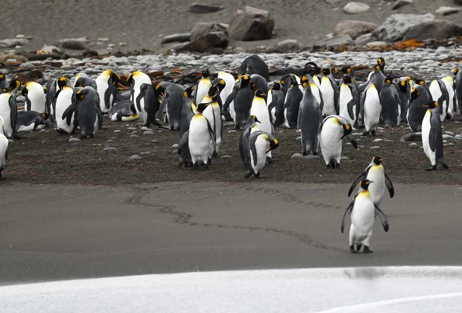 Königspinguine in der wachsenden Kolonie bei der Station von Possession Island