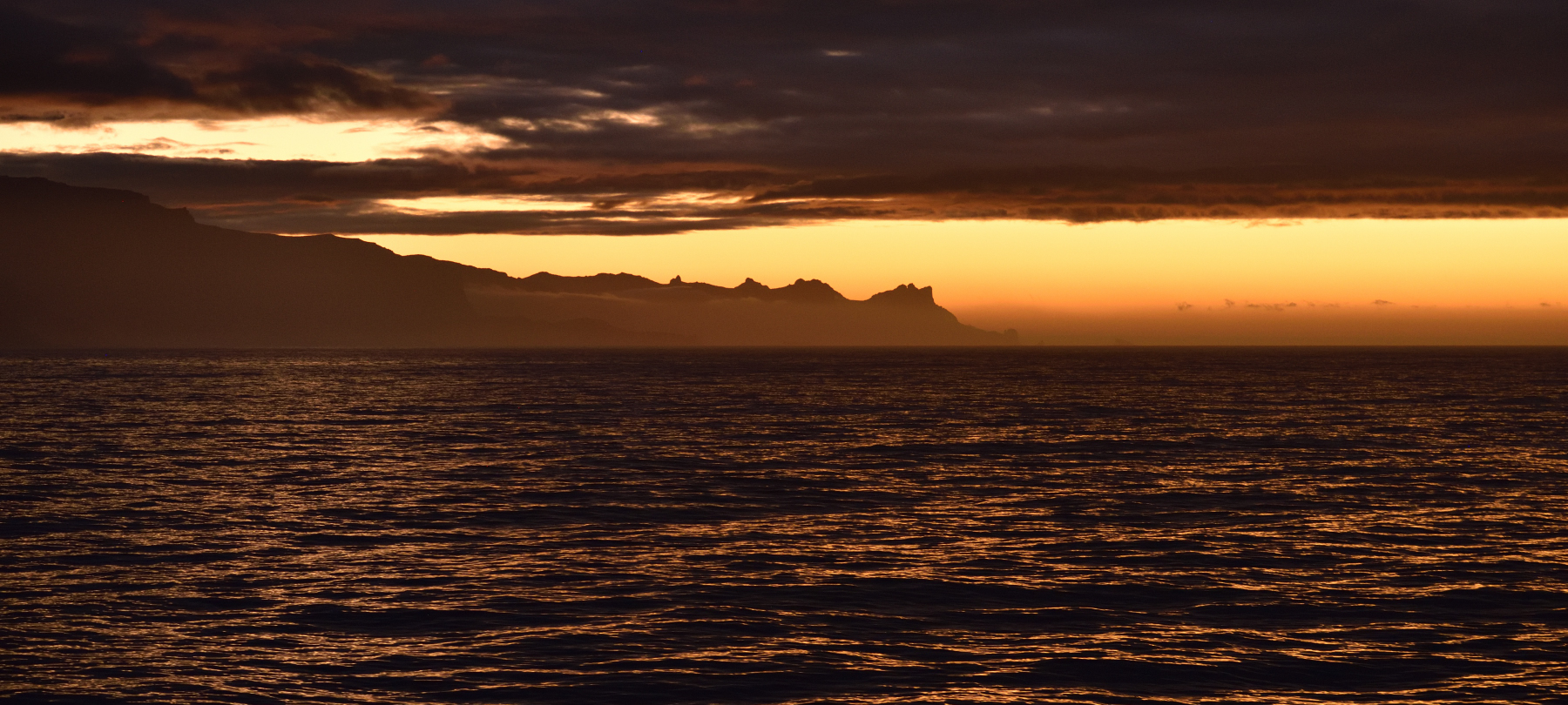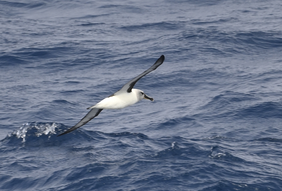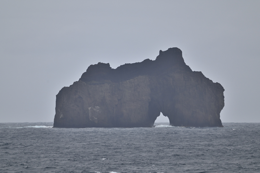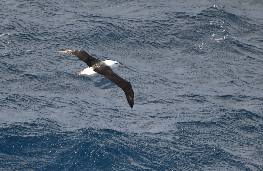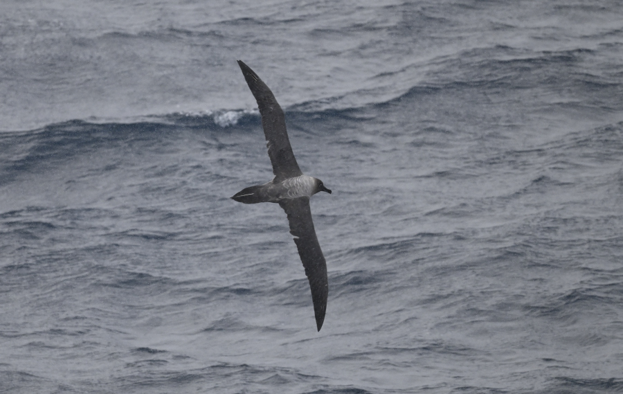 Graukopfalbatros (Thalassarche chrysostoma) gilt als einer der schnellsten Vögel im horizontalen Flug und erreicht Geschwindigkeiten von bis zu 127 km/h. Diese bemerkenswerte Geschwindigkeit wurde durch Satellitentracking während eines Sturms über der Antarktis aufgezeichnet, wobei die Vögel diese Geschwindigkeit über acht Stunden hielten. Rückenwind mag da geholfen haben... Abends letzter Blick zurück auf Crozet: der Rock Percé
