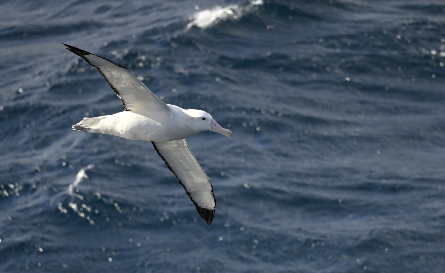 18.2.: Die Nacht bleibt ruhig, die Charcot rollt & stampft minimal, wie vom Kapitän angekündigt. Die See hat immer noch 5m Wellenhöhe, der Himmel ist meist bedeckt, es sind nur ganz wenige Seevögel unterwegs. Königs- und auch Wanderalbatros haben wir gesichtet. Der Kapitän meldete gerade noch 1100 sm bis zur Eiskante. 200 sm haben wir hinter uns. Samstag früh morgens sollten wir das Eis erreichen. Die Gesamtstrecke von Hobart bis zum antarktischen Festland oder der vorgelagerten Insel Dumont d'Urville beträgt etwa 2.700 km.