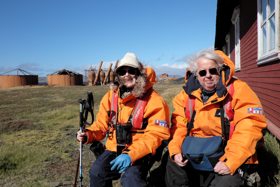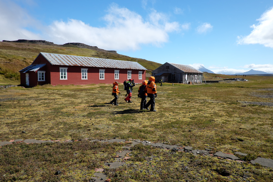 Um 14:30 gehts für uns los zur alten, norwegischen Walfangstation (1906-26) Port Jeanne d'Arc. Zwei französische Brüder haben die Konzession für die Gebäude erteilt. Als Dank ist die Station nach der französischen Nationalheldin benannt worden. Heute wird noch ein Gebäude als Sommerstation für die Feldforschung genutzt, genauso primitiv, wie es damals war, aber Biologen und Geologen sind ja genügsam: Dach überm Kopf und warmes Essen reicht :-)