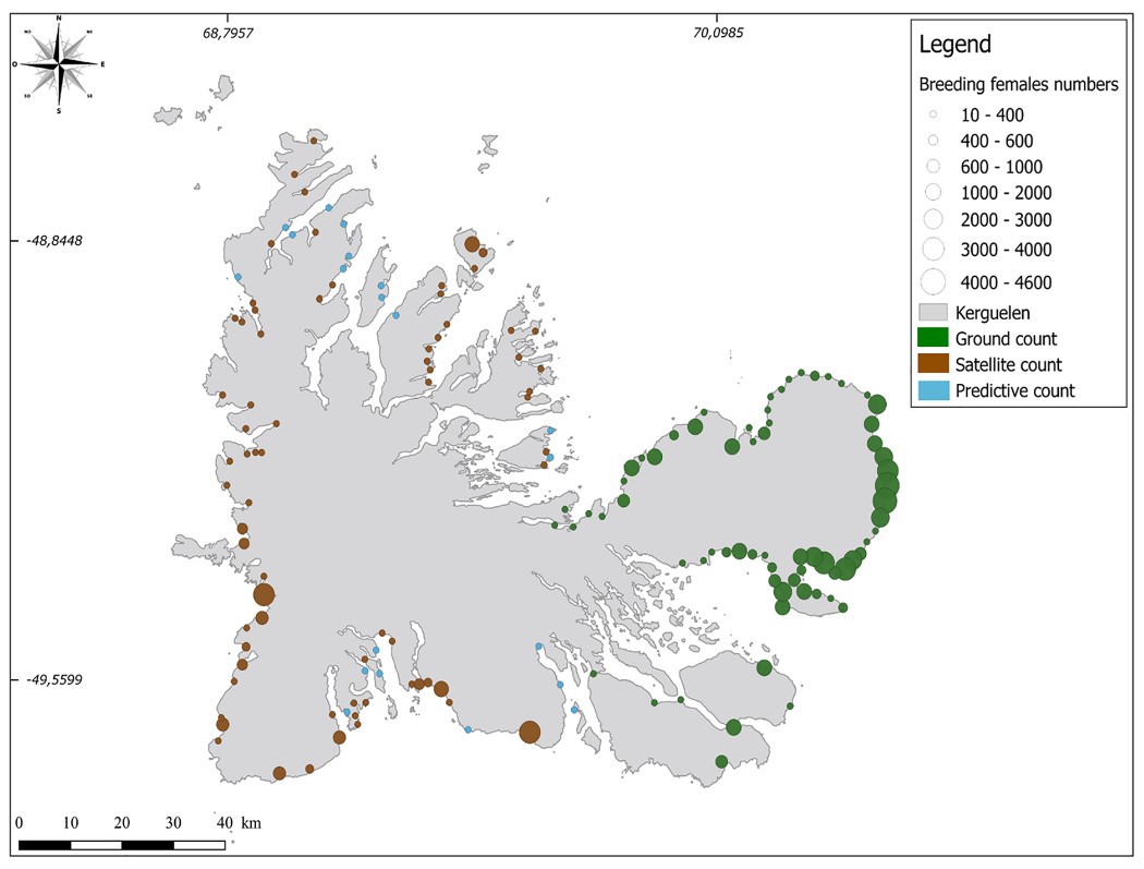 Laborie J. et al. (2023): Estimation of total population size of southern elephant seals (Mirounga leonina) on Kerguelen and Crozet Archipelagos using very high-resolution satellite imagery. Front. Mar. Sci. 10:1149100.