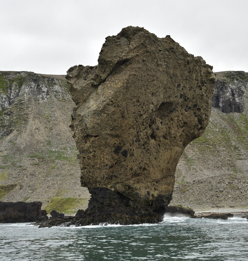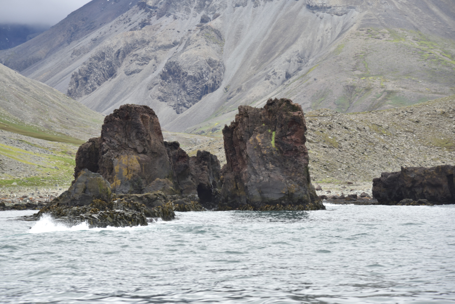 Nachmittags machen wir eine ziemlich weite Zodiacfahrt zum Festland auf die Mule Halbinsel - wieder als letzte Gruppe - landen wir nach 30 min am Ende des langen Latemula Inlet. Grandiose Felsformationen erwarten uns.