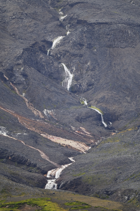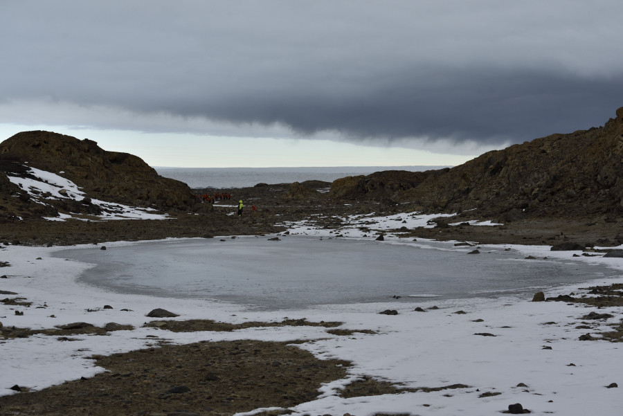 Ross volcano in the south similarly is 1-2 million years old. All these volcanic complexes are extinct. But the inaccessible southwestern peninsula still shows active fumaroles as well as hot water basins reaching 80°C. (https://www.volcanocafe.org/kerguelen-and-the-demise-of-gondwana/comment-page-1/). Das bräunliche Wasser sollte vulkanisch sein. Foto: AK.