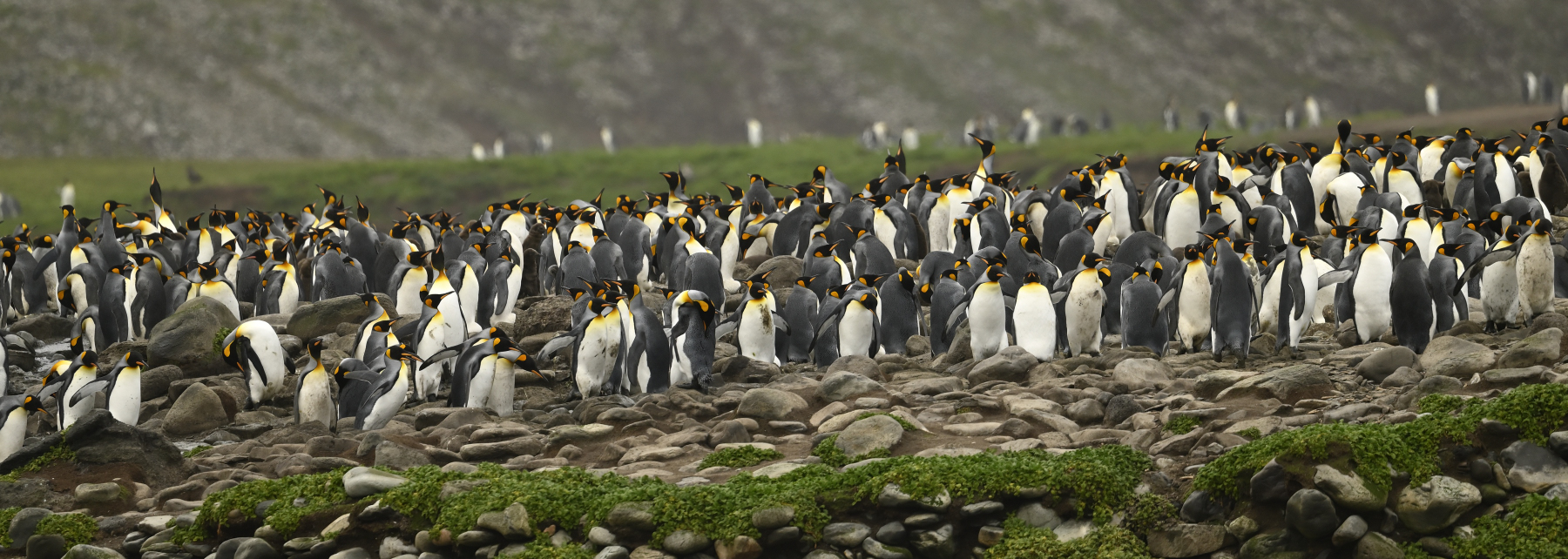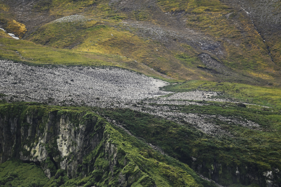 Auf dieser Wiese brüten ca. 45 BP des Wanderalbatros, Aude, eine unserer Naturführerinnen, hat dort vor 10 Jahren beringt.