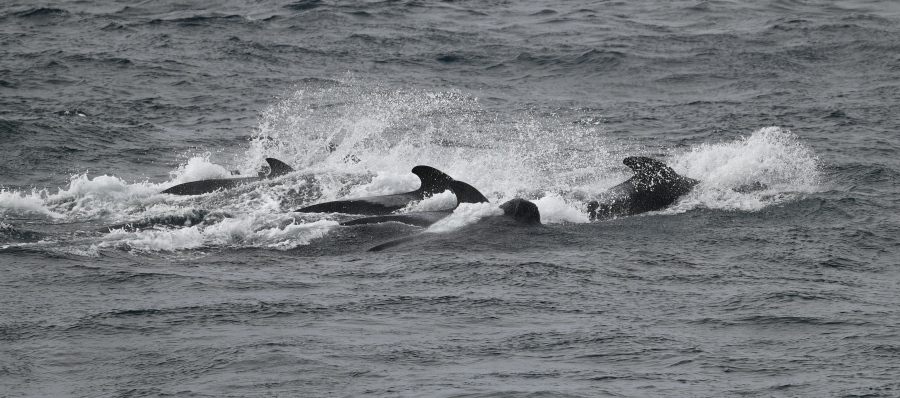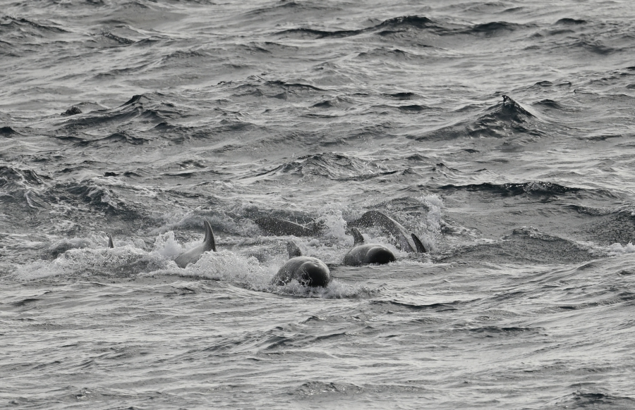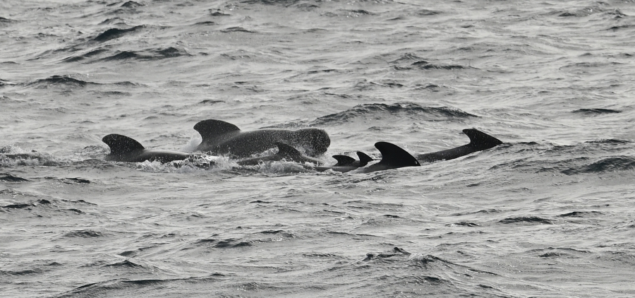 15.3. : Wir haben zwei Schulen Grindwale auf Steuerbord, der Kapitän stoppt das Schiff. Wir beobachten ca. eine halbe Stunde: