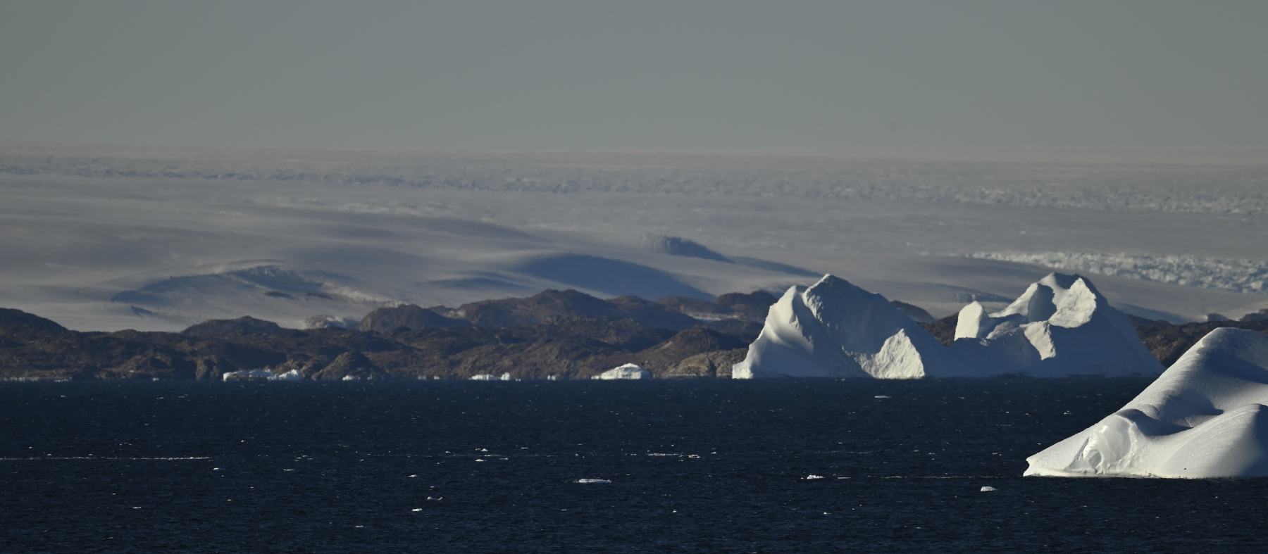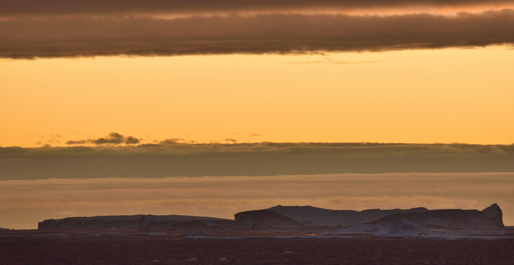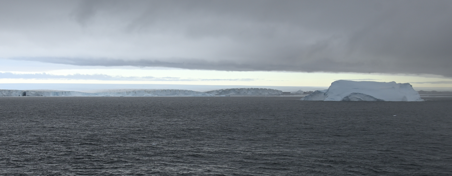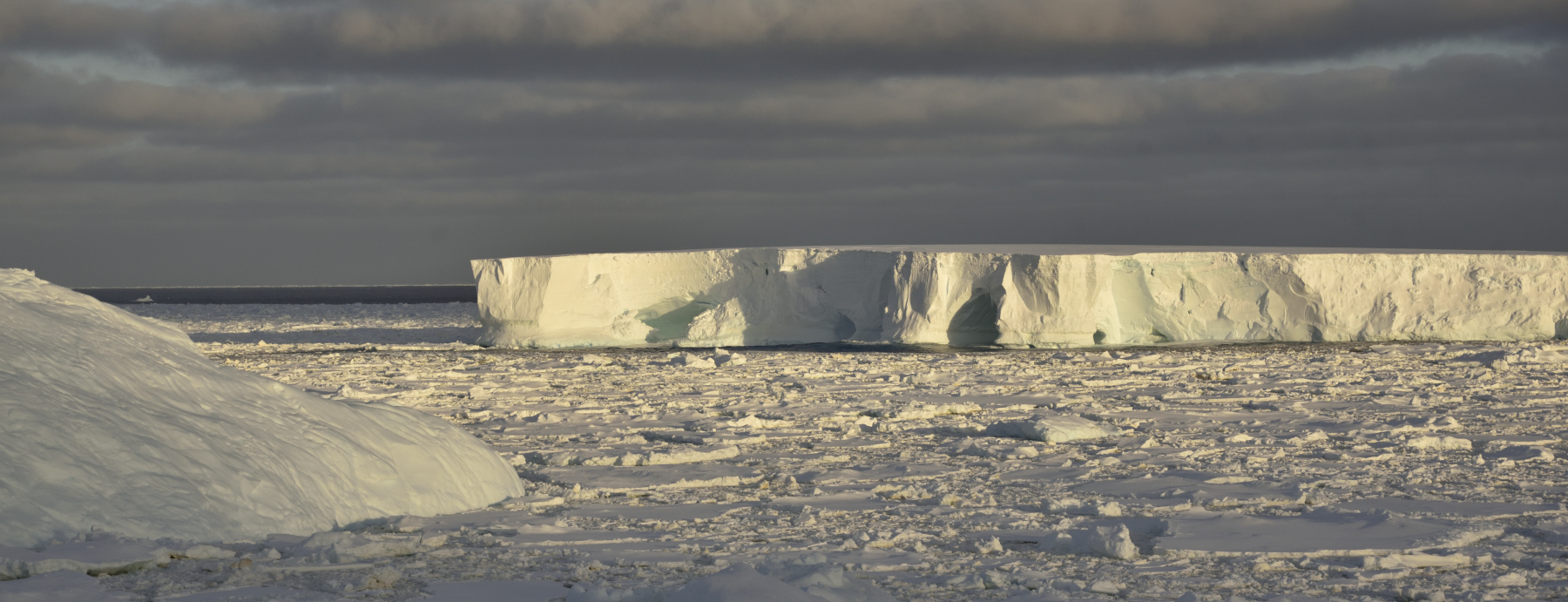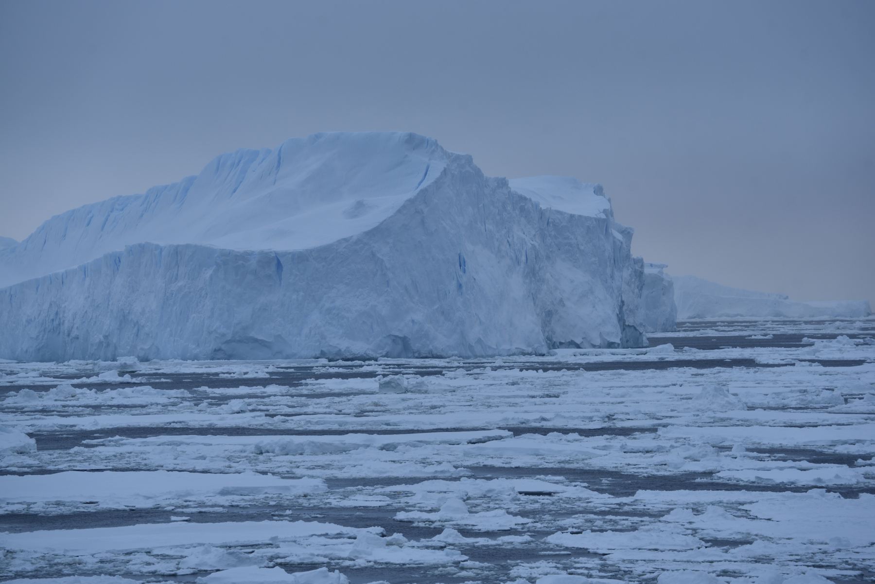 Frühmorgens: eine Kette riesiger Eisberge begleitet uns bis zur Commonwealth Bay. Foto AK