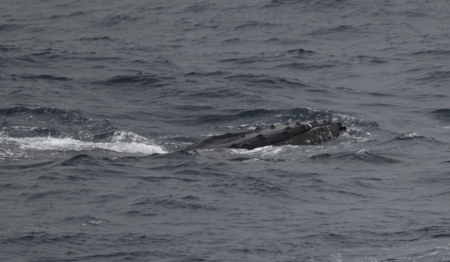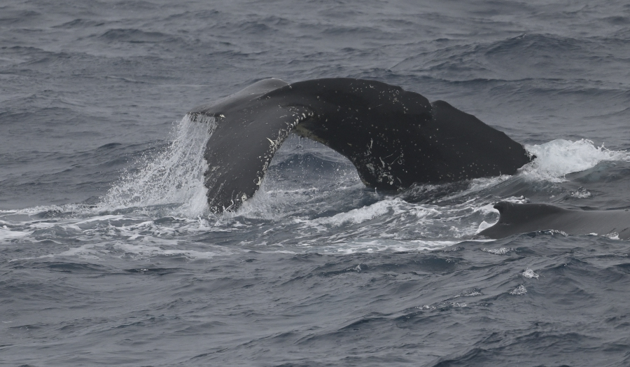 Bis es soweit ist, haben drei Gruppen von fressenden Buckelwalen unsere Aufmerksamkeit verdient. Wir kommen sehr nah an eine Dreiergruppe heran und Kapitän Devorsine stoppt das Schiff für eine halbe Stunde. Super !