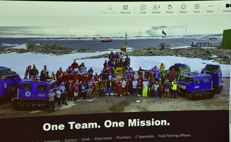 Die Präsentation aus Casey: das Bild ruckelt ein wenig, der Ton mal zu laut, dann zu leise, aber sonst klappt alles Fotos: AK