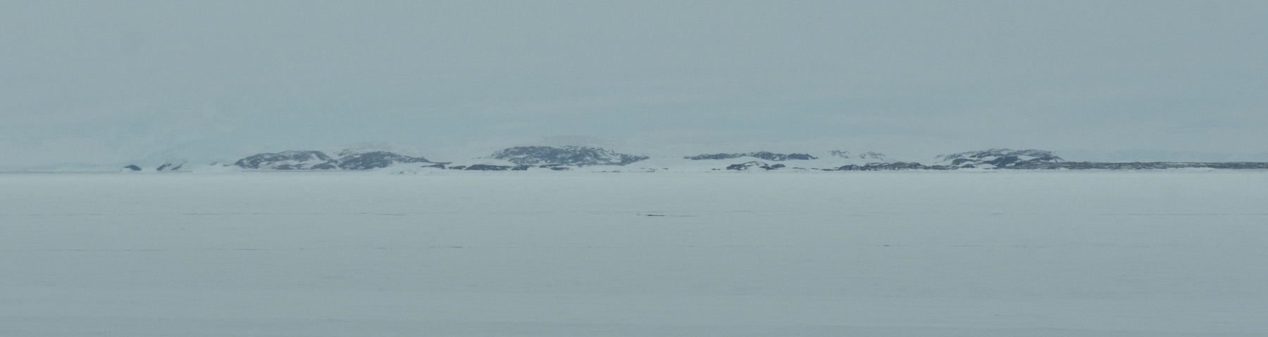 9:30 In der Bay angekommen liegen wir 9 sm vor Cape Denison. Das Festeis ist hier noch 3m dick und darf sowieso nicht gebrochen werden, könnten wir auch nicht ! Fotos vom Cape gelingen wegen der flimmernden Luft nur leicht unscharf: