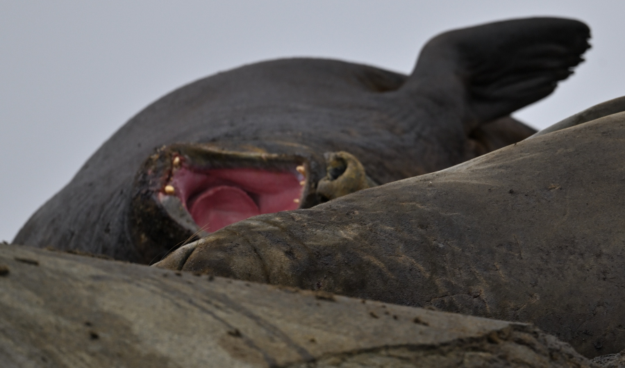 Auf der Ostseite, wo die Station steht, sind Bodenzählungen an den Stränden möglich, der Rest der Insel ist durch Gebirge und Unzugänglichkeit nur per Satellit erfaßbar. Dann gibt es noch Probleme mit der Auswertung bei Seeelefanten, die im Tussokgras liegen, da muß man mit mathematischen Schätzungen arbeiten. Trotz alledem ist dies die derzeit genauest mögliche Auswertung (Laborie J. et al. 2023). 100.300 Weibchen wurden so gezählt, mehr als doppelt so viele wie ursprünglich angenommen. Nach Südgeorgien mit 110.000, beherbergt damit Kerguelen die zweitgrößte Kolonie weltweit, zusammengenommen macht das ca.80% des Weltbestandes aus!