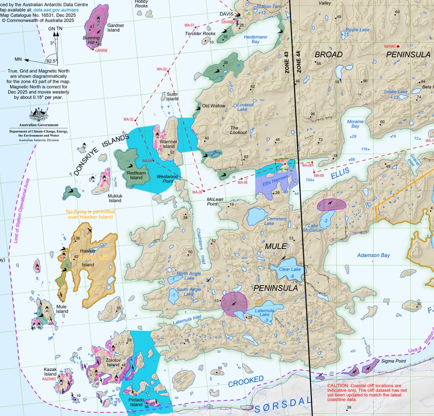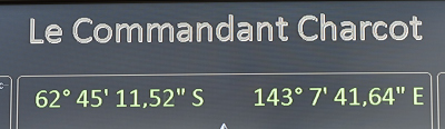 Immer noch Samstag: Höre gerade (18:30) das Commonwealth Bay wegen Sturm morgen nicht geht, jetzt ist Dumont d'Durville, die frz. Antarktisstation etwas weiter westlich unser Ziel. Die Station selber dürfen wir nicht mehr besuchen, die haben schon auf Winterbetrieb umgestellt und können wegen diverser Ansteckungsgefahren keine Besuche mehr empfangen, weil sie ab jetzt für viele Monate auf sich allein gestellt sind...