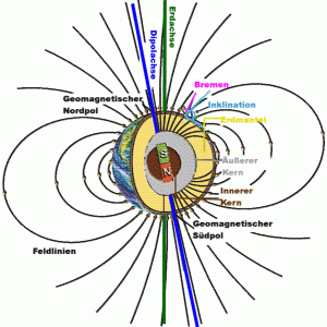 Inklinationskompass, kann man die Feldlinien des Magnetfeldes an jedem Punkt der