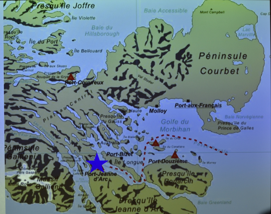 7.3.: Morgens um 6:00 gehts los mit der Landschaftsbetrachtung vom Schiff aus. Nachdem wir einen Teil der Strecke mit dem großen Zodiac vorweg gelotet haben, weil nicht kartiert, erreichen wir gegen 10:00 Porte Jeanne d'Arc. Die erste Gruppe fährt gegen 11:00 mit den Zodiacs an Land. Da hier nur 60 Leute gleichzeitig an Land dürfen, sind wir erst um 14:00 dran. Die Navigation zwischen den Inseln dürfte dem Kapitän einige Seemannskunst abverlangen, sind wir doch das erste Passagierschiff überhaupt in diesen Gewässern. Bis zur Covid-Epidemie konnten auf dem Versorgungsschiff Marion Dufresne 8 Paxe mitfahren, seitdem nicht mehr. Die Kerguelen sind 1772 vom Franzosen Yves Joseph de Kerguelen deTremarec entdeckt worden. Sie haben den Spitznamen Islands of Desolation. Sie sind ca. 4.000 km von Australien, 3.800 km von Südafrika und 2.000 km von der Antarktis entfernt.