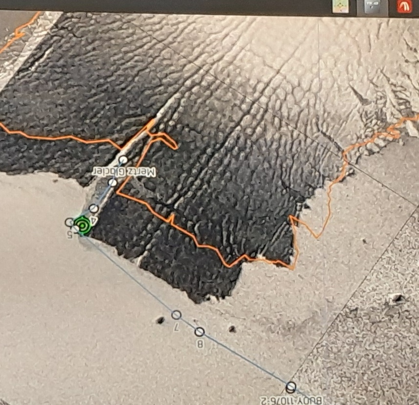 Karte aus dem Recap: rechts der Knick in unserem Kurs war der Magnetpol am 24.2.