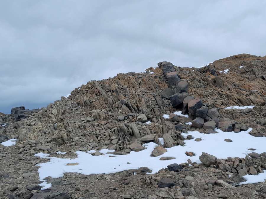 Oben drauf wird es dann wieder flacher. Es ziehen Wolken rein. Der Soersdal Gletscher ist gut zu sehen Fotos: RK