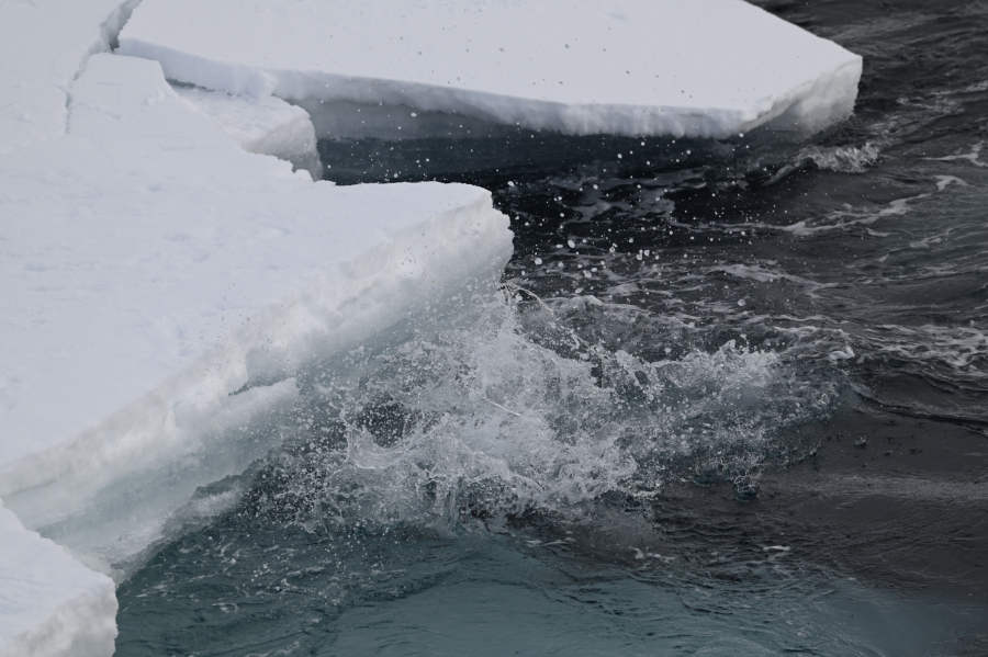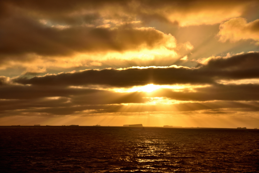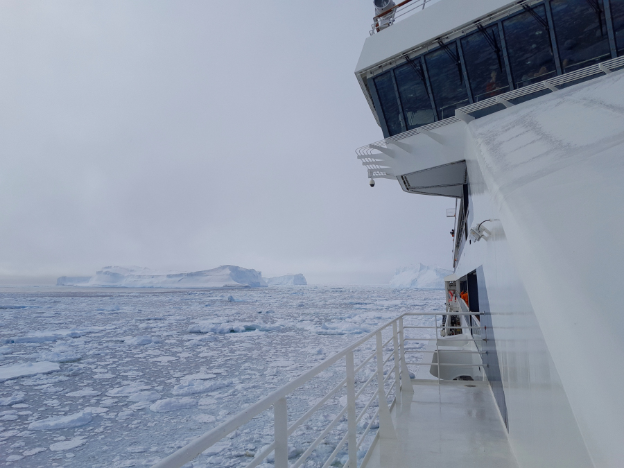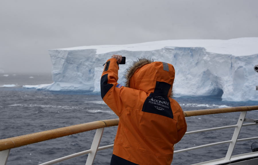 25.2.: Wir sind vorbei an der Porpoise Bay mit dem tollen Treibeis und den fantastischen Eisbergen bei teilweisem Sonnenschein. Die Motive springen ins Auge.