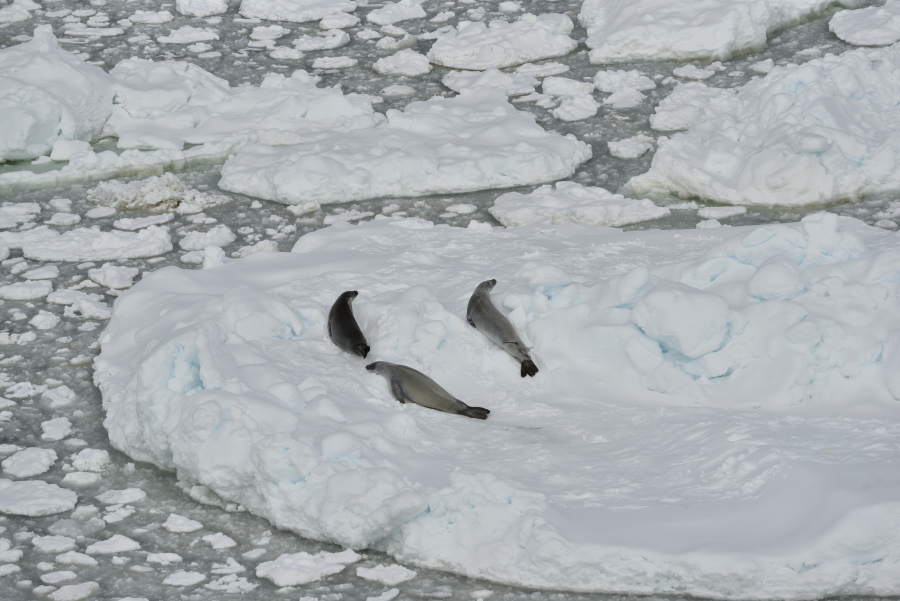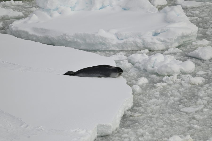 Sogar alle fünf Robbenarten waren zu beobachten: Seeelefant, Weddellrobbe, Krabbenfesser, Rossrobbe & Seeleopard, die letzteren sogar in guter Fotodistanz auf diversen Eisschollen.