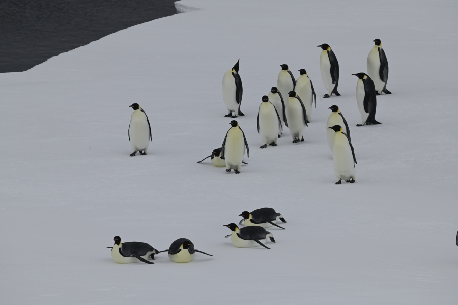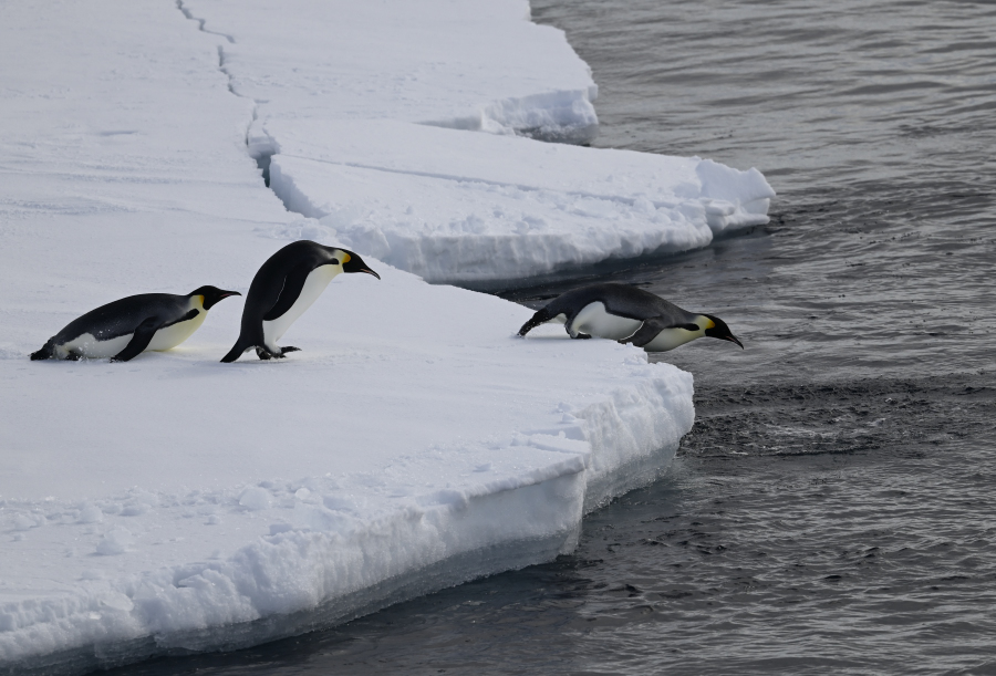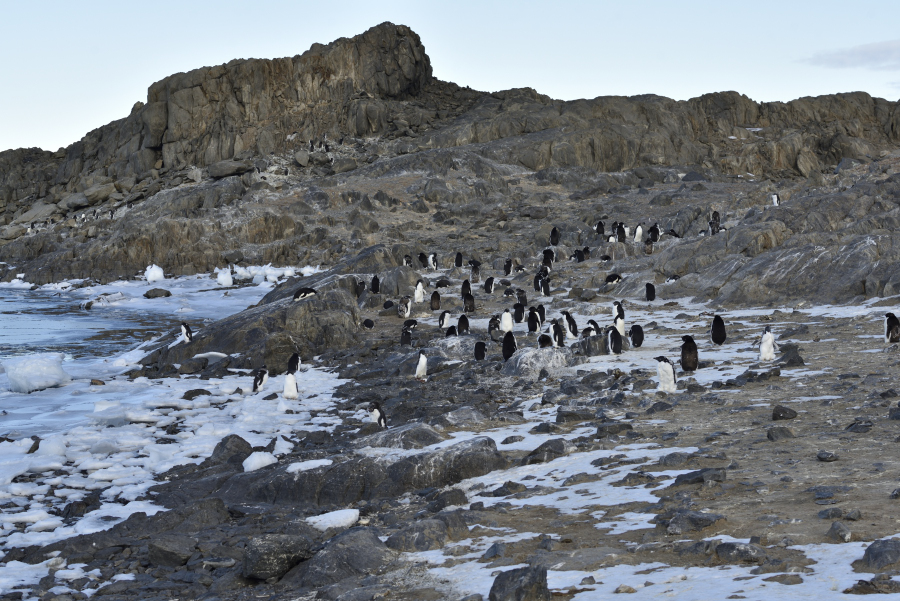 Die meisten Adelies haben ihre Kolonie verlassen und stehen auf Eisschollen rum zum Mausern. Fotos: AK